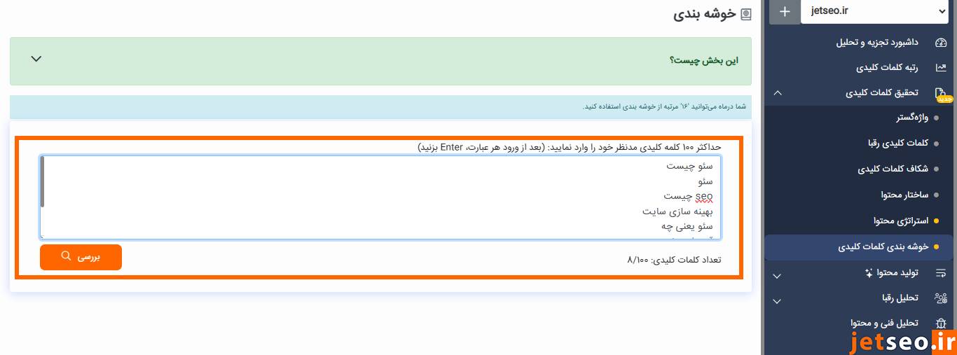 معرفی بخش خوشه بندی کلمات کلیدی جت سئو